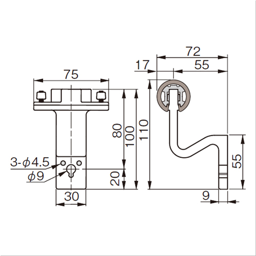 ・タイヤ付ハンドレールを後入れできるブラケットにはめ込んでネジ止めする だけなので施工が簡単です。 ・フレキシブルジョイントは自在に曲げられるので、施工現場での芯材曲げ加工やタイヤはめ込み作業が不要です。 [色]シルバー [品番/呼称]E116 [サイズ]75mm×100mm×60mm [重量]120g [材質]アルミ [仕上げ]アクリル焼付塗装 [ご注意] ・ブラケットは取付け間隔900mm以内でご使用ください。また、端部・接続部からは150mm以内にブラケットを取付けてください。 ・ネジの締付けは確実に固定している事を十分にご確認ください。 ・色をご指定ください。 ・納期:ご確認ください。