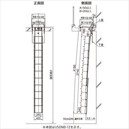 ・揺れの少ない半固定タイプのスライド式はしごです。 ・耐久性、耐防水性を重視した設計です。 ・避難準備と収納作業が簡単です。 ・チャイルドロックを採用しています。 [品番/呼称]USDNB-7 [サイズ]H210mm [重量]26.3kg [材質] 上蓋:SUS304 t=1.5 上枠:SUS304 t=1.2 本体:SUS304 t=1.2 下蓋:SUS304 t=1.2 [仕上げ]研磨 [段数]5 [適用階高]1870〜2255 [開口寸法]600mm×600mm [外形寸法]648mm×648mm [品番/呼称]USDNB7 [サイズ]H210mm [重量]28.1kg [材質]上蓋:SUS304 t=1.5上枠:SUS304 t=1.2本体:SUS304 t=1.2下蓋:SUS304 t=1.2 [仕上げ]研磨 [段数]7 [適用階高]2550〜2935 [開口寸法]600mm×600mm [外形寸法]648mm×648mm