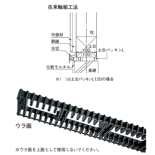・基礎の仕上げモルタル施工の際は、土台パッキンL側面の換気スリットをふさがないよう特にご配慮ください。