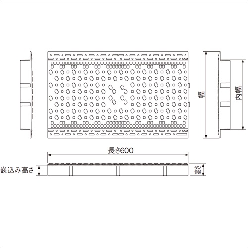 ・製品重量はスチール製の1/5と軽く、取扱いや施工が容易です。 ・強靭で腐食に強く、耐久性に優れています。 ・材質は熱可塑性樹脂のため、リサイクルが可能です。 ・ハイヒール、ベビーカー等、車輪の落ち込みがありません。表面には滑り止め防止と排水機能も施しています。 ・公園、学校、ゴルフ場、テニスコート、洗浄場、市街地等のあらゆる場所の排水溝にてご利用いただけます。 [色]グレー [品番/呼称]U-150 [サイズ]幅200mm、内幅148mm、長さ600mm、高さ32mm、嵌込み高さ24mm [重量]1.3kg [材質]ポリカーボネート [ご注意] ・U-180、U-240のT2対応仕様(特注品)については、お問い合わせください。 ・グレーチング中央部にご希望のデザインを入れることもできます。お問い合わせください。 ●溝幅:150mm ●適用荷重:歩行用500kgf/平方メートル