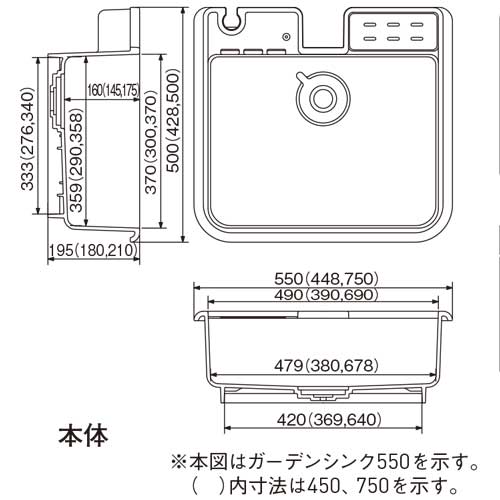 [色]ミカゲ [サイズ]本体サイズ:H210mm、W750mm、D500mm [重量]7.9kg [付属部品]・ゴム栓 ・目皿 ・排水栓 [材質]強化ポリプロピレン ●内容量:40L