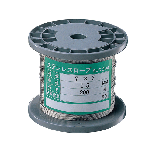 ステンレスロープは、耐食性、耐錆性、耐摩性にすぐれ、その上美しい光沢を持っているので広範囲の分野に使用されています。 [品番/呼称]S19-1.5M
