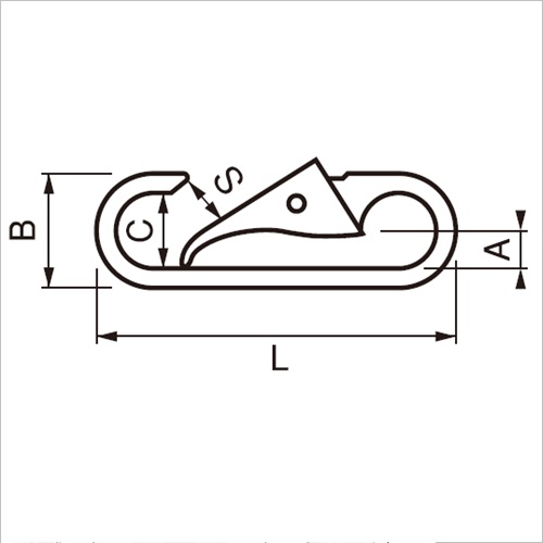 [A]6mm [B]25mm [C]14mm [L]80mm [S]11mm [重量]40g [使用荷重]30kgf
