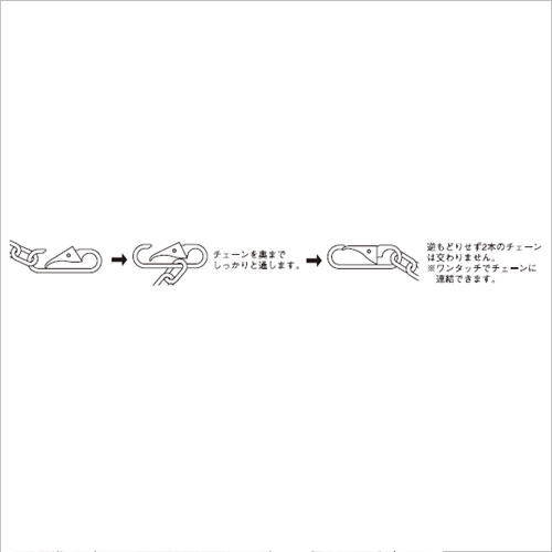 ・ワンタッチでチェーンに連結ができます。 ・チェーン連結後、2本のチェーンは交わりません。