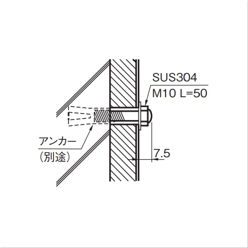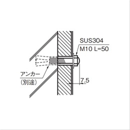 家具の転倒防止金具を取付けるためのボルト(化粧頭)です。 [サイズ]M10×L50mm [材質]SUS304 【ご注意】都営住宅X-12-2該当品です。