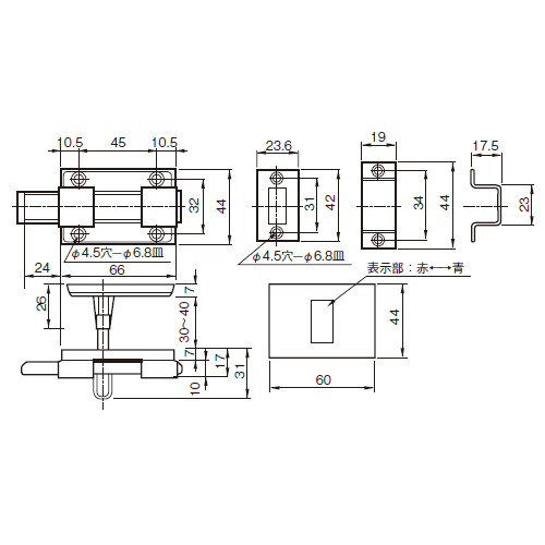 主にトイレの内・外開き扉用などとしてご使用いただけます。 [サイズ]表記による [本体重量]200g [付属品]SUS十字穴付皿木ネジ 3.1×20:6本 3.1×16:2本 [材質]SUS304 [仕上]研磨 ●扉厚:30〜40mm