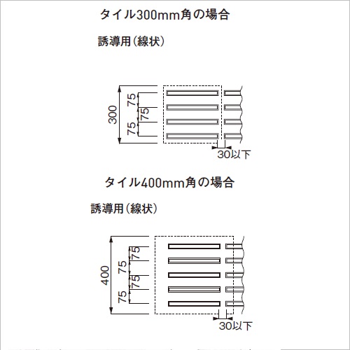 [製品仕様] ステンレス ヘアライン(ダイヤカット) [サイズ] 27x290 [特徴] ・JIS T 9251: 2001の規格に基づいて製造 ・石/コンクリート用 [施工]ステンレス製点字鋲、現場施工用