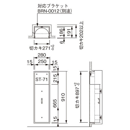 [材質]本体:スチール 扉:アクリル [色]ポーラルホワイトペインント [サイズ]280×192×910 [本体重量]9.2kg [備考] ・全埋込式 ・アクリル スモーク扉付 ・絵、文字標識ステッカー付 ST-171-KG