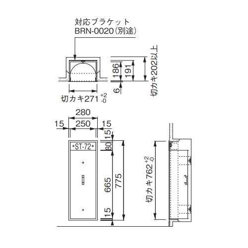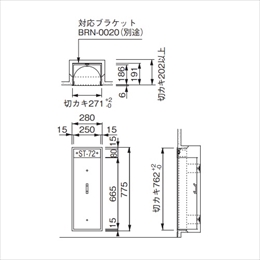 [材質]本体:スチール 扉:アクリル [色]ポーラルホワイトペイント [サイズ]280×188×775 [本体重量]8.6kg [備考] ・全埋込式 ・アクリル スモーク扉付 ・文字標識ステッカー付 ST-172-KG