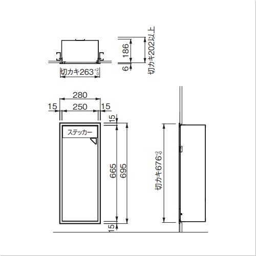 [材質]本体:ステンレス 扉:ステンレス [仕上]ヘアーライン [サイズ]280×192×695 [本体重量]7.0kg [備考] ・全埋込式 ・扉付 ・文字標識ステッカー付 ST-172-KG