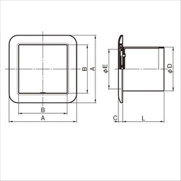 角型クーラーキャップは、キャップ部がマイナスドライバーなどで取り外しができます。 配管カバーに対応できる構造です。 [色]クールホワイト [サイズ]A:114、B:82、C:7、D:74、E:66、L:70 [本体重量]55g [材質]ASA ●適用パイプ:SU 75 75× 80