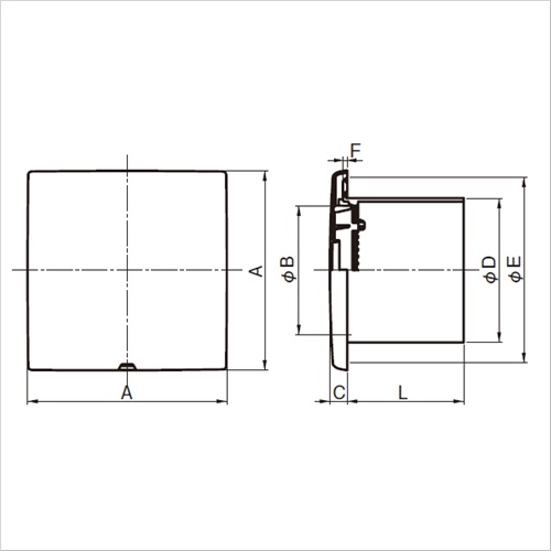 角型クーラーキャップは、キャップ部がマイナスドライバーなどで取り外しができます。 配管カバーに対応できる構造です。 [色]クールホワイト [サイズ]A:137、B:89、C:12、D:99、E:128、F:3、L:80 [本体重量]145g [材質]ASA ●適用パイプ:SU100 100×106