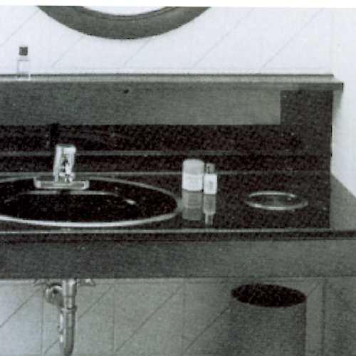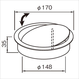 洗面化粧台に穴開け取付けゴミ投入口でフタ回転方式です。 フタの回転軸を中央からずらしているため、大きなゴミも入ります。