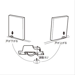 ・戸の位置が上がり過ぎたり、下がり過ぎたり、傾いたりしている場合は、戸を外して、戸車の調整ネジをドライバーで右或は左に所定の位置まで回してください。