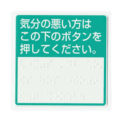・呼出用ボタンの位置を知らせる点字標示板です。 ・ISE-100はEペレット製で、画面部分を基板に落し込む事で、手を傷つけたりせず、剥がれを防止します。 ・(社福)日本盲人社会福祉施設協議会推薦品です。