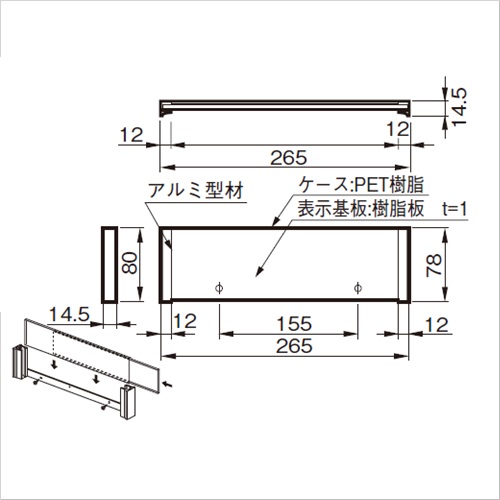 ・割れにくいプラスチック樹脂(ポリカーボネート樹脂)を使用しています。 [サイズ]H80mm、W265mm [重量]155g [材質]ケース:ポリエチレンテレフレート 金具:アルミ [備考]UV印刷