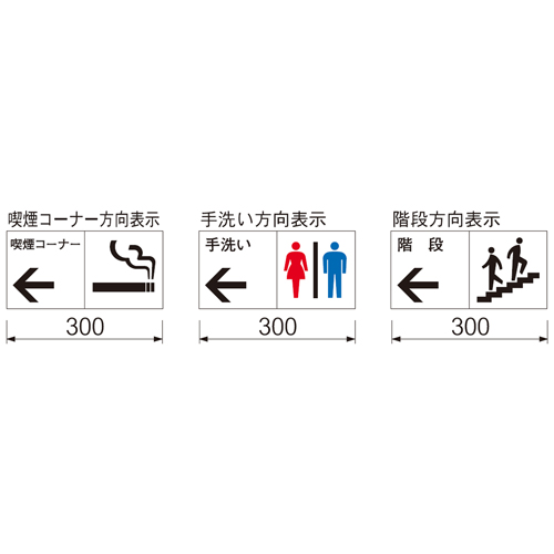 ・ピクトグラムは、JIS Z 8210案内用図記号に基づいています。 [品番/呼称]FI-15-300 [サイズ]H150mm、W300mm [重量]356g [材質]表示板:アクリル白 黒印刷 [備考]UV印刷含む