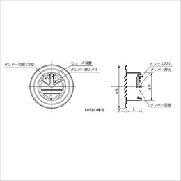 [サイズ]A145mm、B98mm、L50mm [本体重量]230g [材質]アルミ [仕上]アルマイトシルバー ●仕様:網なし・FD付 ●適用パイプ:SU100 100×106 ●有効換気面積:20.1平方センチメートル ●防火ダンパー:公称作動温度72℃