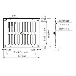 [サイズ]350x200x7mm [本体重量]230g [材質]アルミ [仕上]アルマイトシルバー・クリアー [有効換気面積]176平方センチメートル