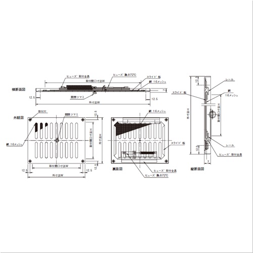 ・防火ダンパー:公称作動温度72℃ ・サイズにより穴数が違います。 ・ステンレス製も製作可能です。