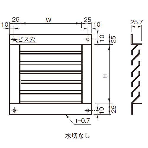 取付開口寸法は、H寸法+10mm、W寸法+10mmとなります。オーダー品の場合は、見込み寸法、ピッチ等が規格とは異なる場合がありますので、ご確認ください。