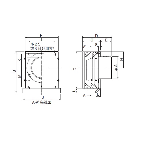 ・止水性能が大変優れています。 ・外風の逆流が非常に少なく安定的な換気ができるため、省エネの一環になります。 [品番/呼称]DS-100TED-C [サイズ]A:97、B:180、C:160、D:127、E:49、F:145、G:78、H:70、I:118、J:165、K:84 [材質]ステンレス、カチオン電着+シルバー焼付塗装 [仕様]FD付